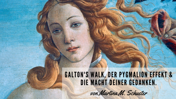Pygmalion ist eine Figur aus Ovid’s ‚Metamorphosen‘. Pygmalion wird dort als Bildhauer beschrieben, der eine weibliche Figur modellierte. Nach dem sein Werk beendet war verliebte er sich unsterblich in sie. Er gab ihr den Namen Galatea. Seine Liebe wurde immer stärker und weil Venus Mitleid mit dem liebeskranken Pygmalion hatte, erweckte sie seine Galatea zum Leben. Genauso geht es uns mit unseren Gedanken, die wir Tag für Tag denken. Wenn dies oft genug geschieht, dann werden sie Wirklichkeit.